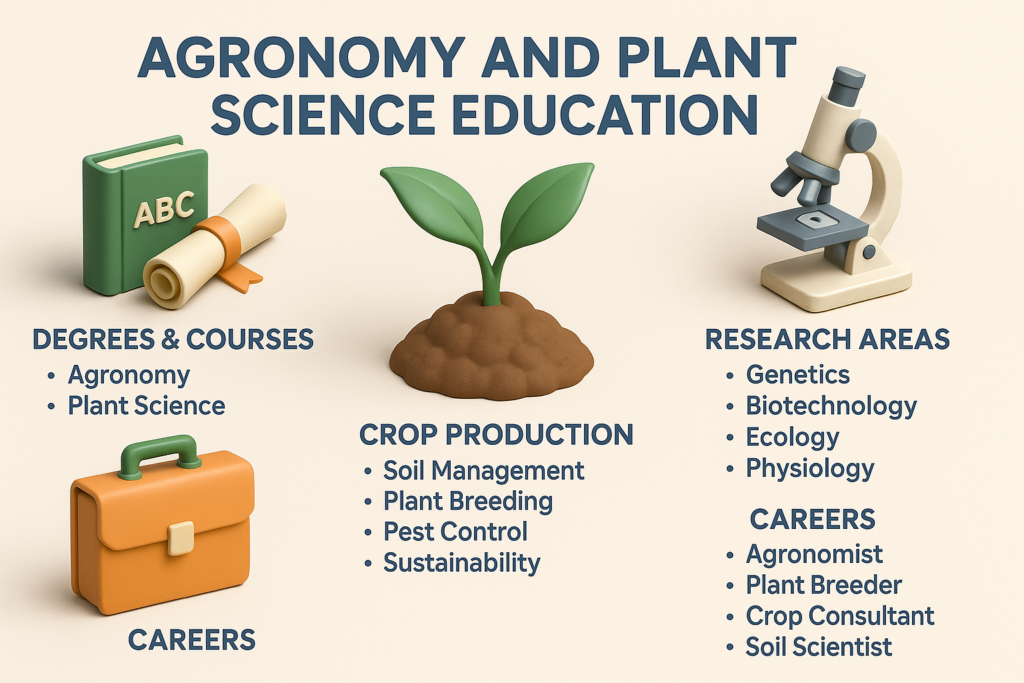This article provides a comprehensive and deeply structured study of how agronomy and plant sciences are taught, researched and practiced across the United States. It also explains the major degree programs, research strengths, laboratory systems, universities, career paths and job prospects available in the field.