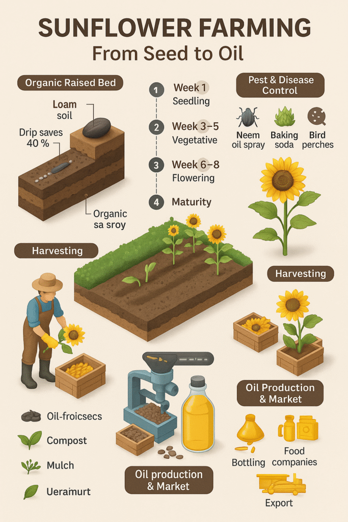 Q4. Is organic sunflower oil more profitable? Yes, organic oil can fetch 2–3x higher price in urban and export markets.