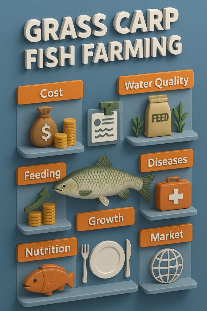 Grass Carp fish farming, Grass Carp cost and profit, Grass Carp aquaculture guide, Grass Carp feeding system, Freshwater carp business, global fish farming systems, weed-based fish culture, carp stocking density