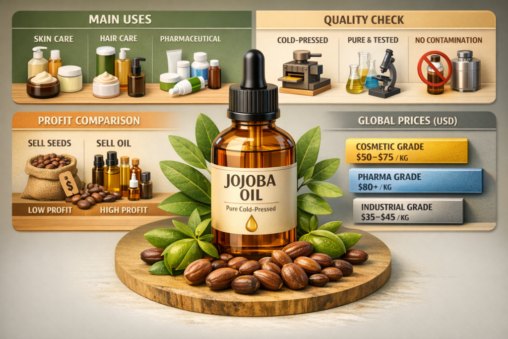 This is why most profitable jojoba operations globally are integrated producers, not raw sellers.