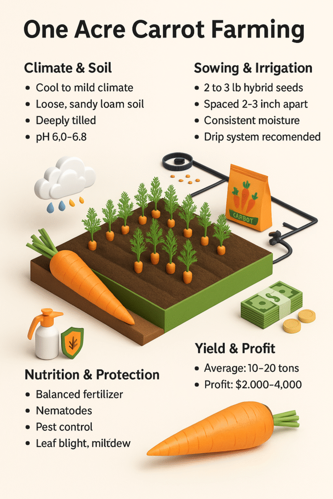 The story of growing carrots on one acre is a story about trust—trust in soil, trust in timing, and trust in the invisible growth happening underground. Carrots are among the few vegetables where the most important part grows entirely hidden from the farmer’s eyes. This demands a different kind of skill, one where observation is done through leaves, soil texture, moisture feel, and climate rhythm. Farmers who master carrots develop a kind of intuitive eyesight—an ability to “see” underground without digging.