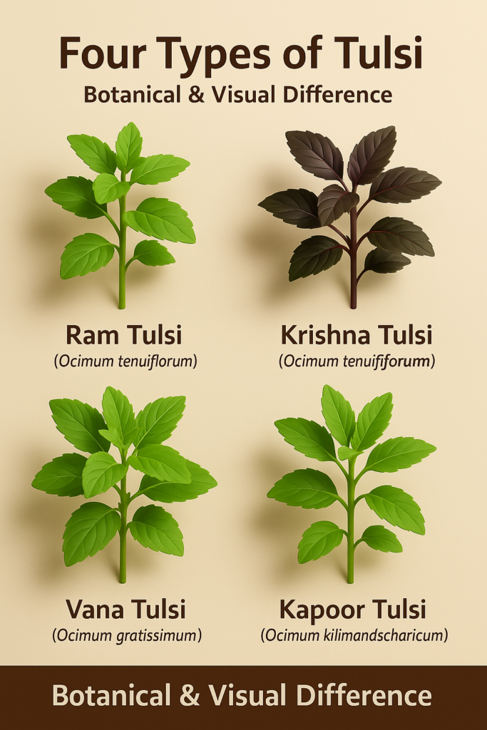 Many online articles treat Tulsi as a single plant with generic benefits. That approach is scientifically incorrect. Ram Tulsi, Krishna Tulsi, Vana Tulsi and Kapoor Tulsi are not identical. They differ in genetics, chemical composition, aroma, medicinal strength, growth pattern and commercial demand. Understanding these differences is essential for correct cultivation, processing and marketing.