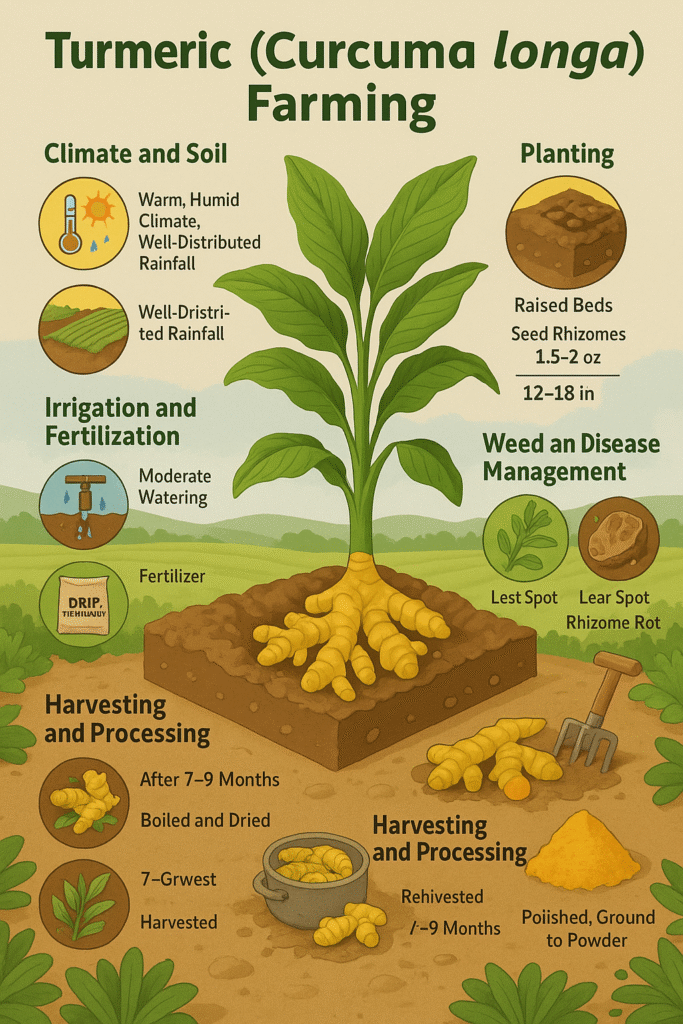 Climate decides turmeric personality. The crop loves warmth, moderate humidity, and steady moisture. Turmeric dislikes sudden cold, prolonged drought, and waterlogging. It thrives in temperatures where the air feels comfortably warm rather than hot. This is why turmeric aligns naturally with monsoon-fed systems and controlled irrigation systems equally well.